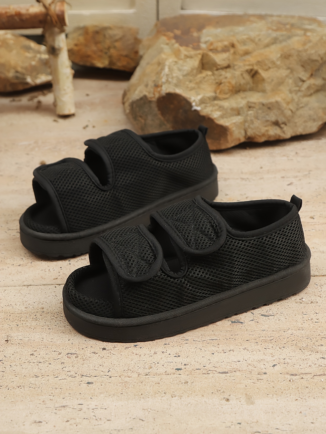 [Non-Slip Slip-On Slippers] – Solid Color Fabric Upper & Inner, TPR Sole, Easy Clean, All-Season Magic Tape Back Strap Sandals for Swollen Feet, Post-Surgery Comfort