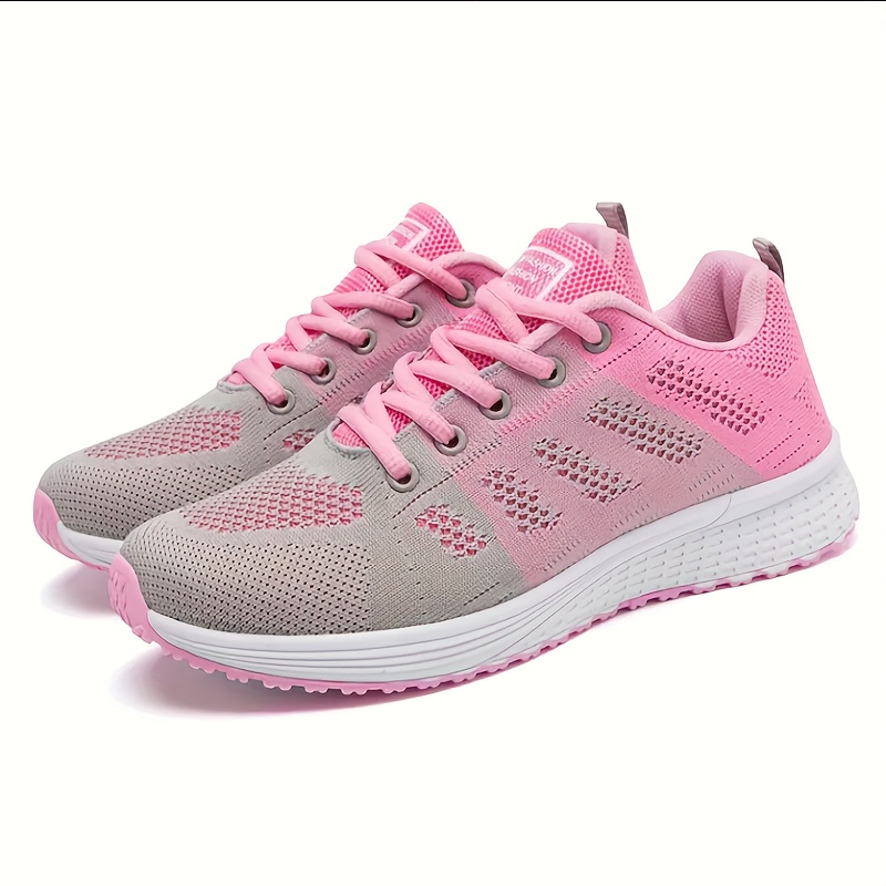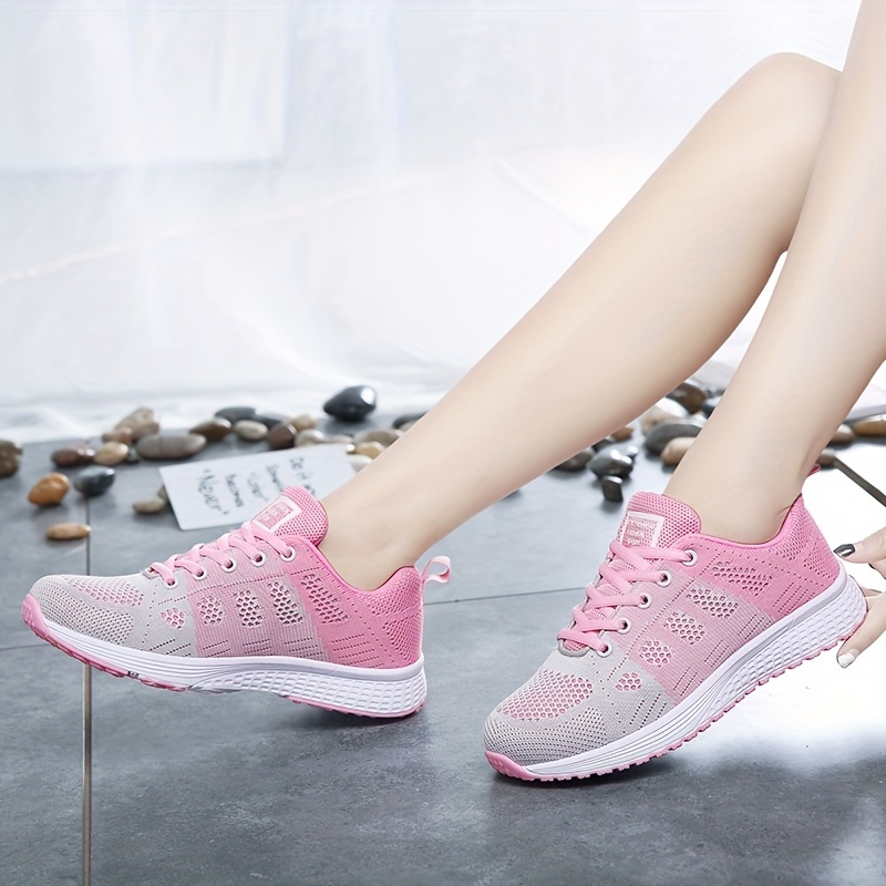 Lace Up Low Top Lightweight Mesh Casual Sneakers, Flying Woven Breathable Running Training Shoes