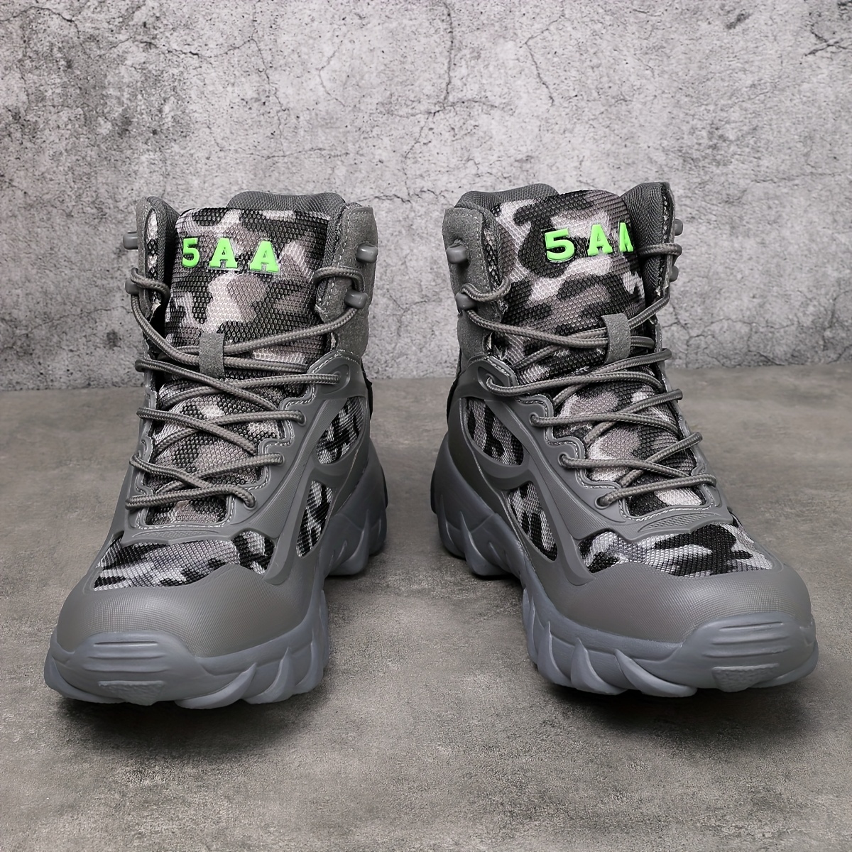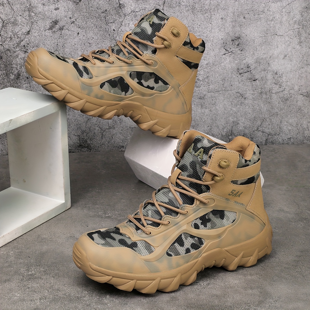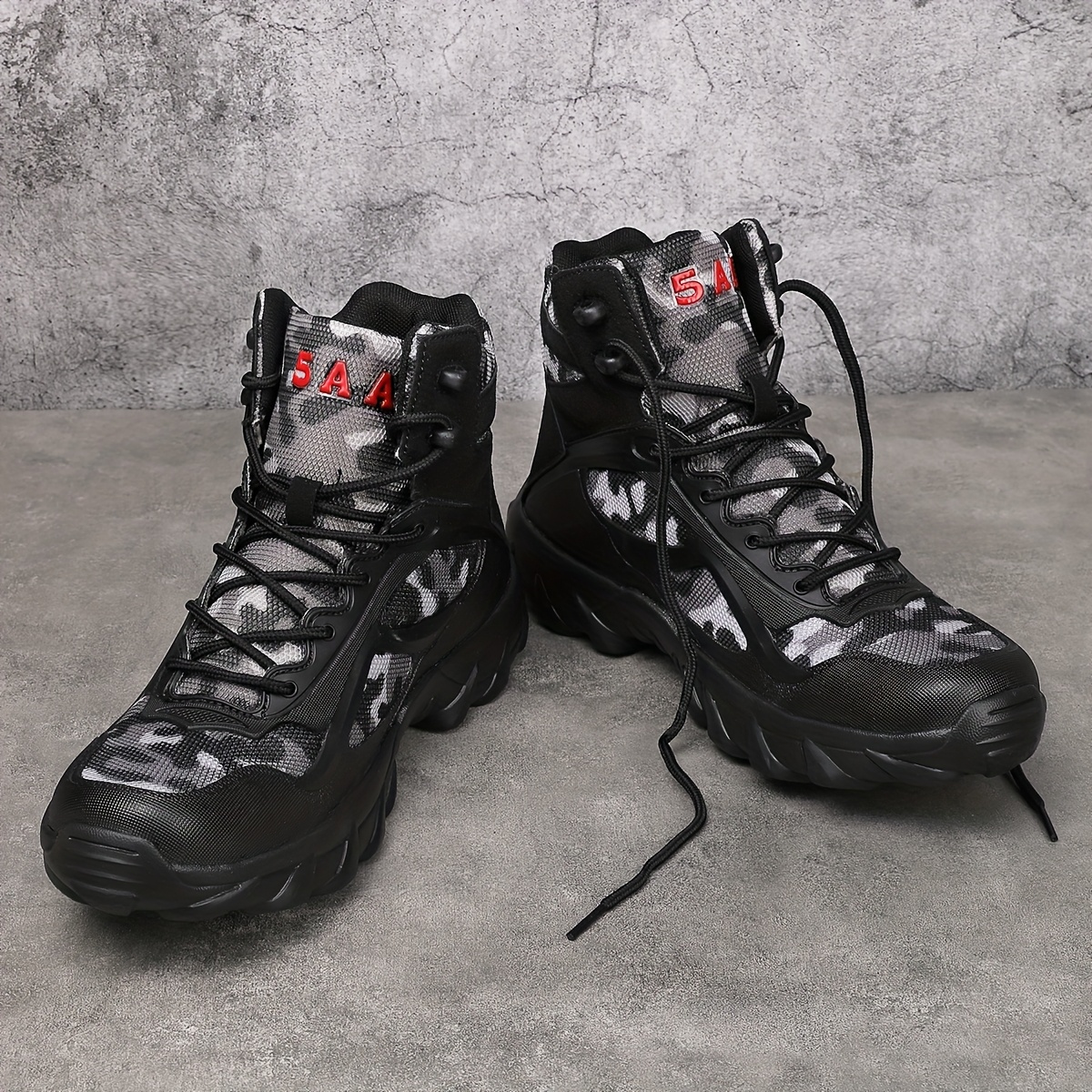 Tackle any terrain with these high-top hiking boots, featuring a breathable upper, shock-absorbing sole, and durable lace-up design. The side zipper offers quick access, while the bold black and orange patterned sole adds style and traction. Perfect for outdoor adventures or casual everyday wear with all-day comfort and grip.