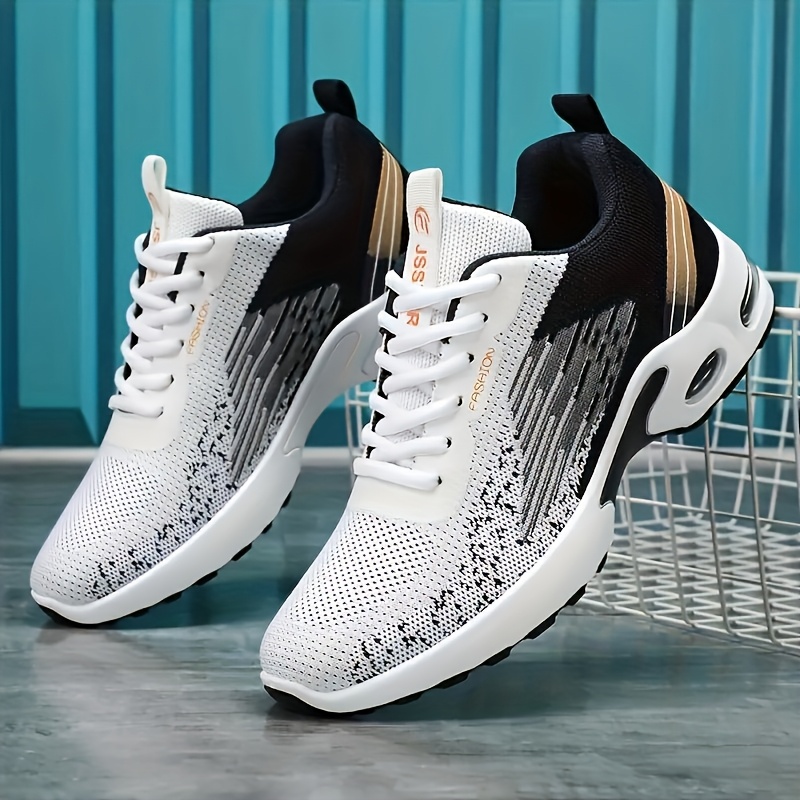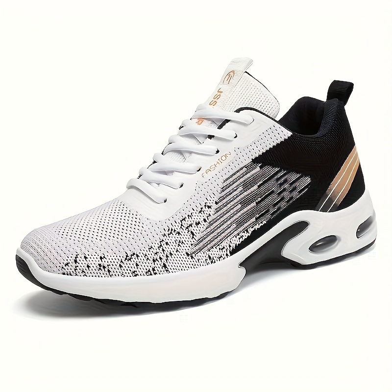 Lace-Up Low-Top Design, Rubber Sole for Outdoor Running & All-Season Wear, Black/White/Golden Accents, Active Lifestyle Shoes, Sleek Footwear, Comfortable Fit, Sneakers, Casual Attire
