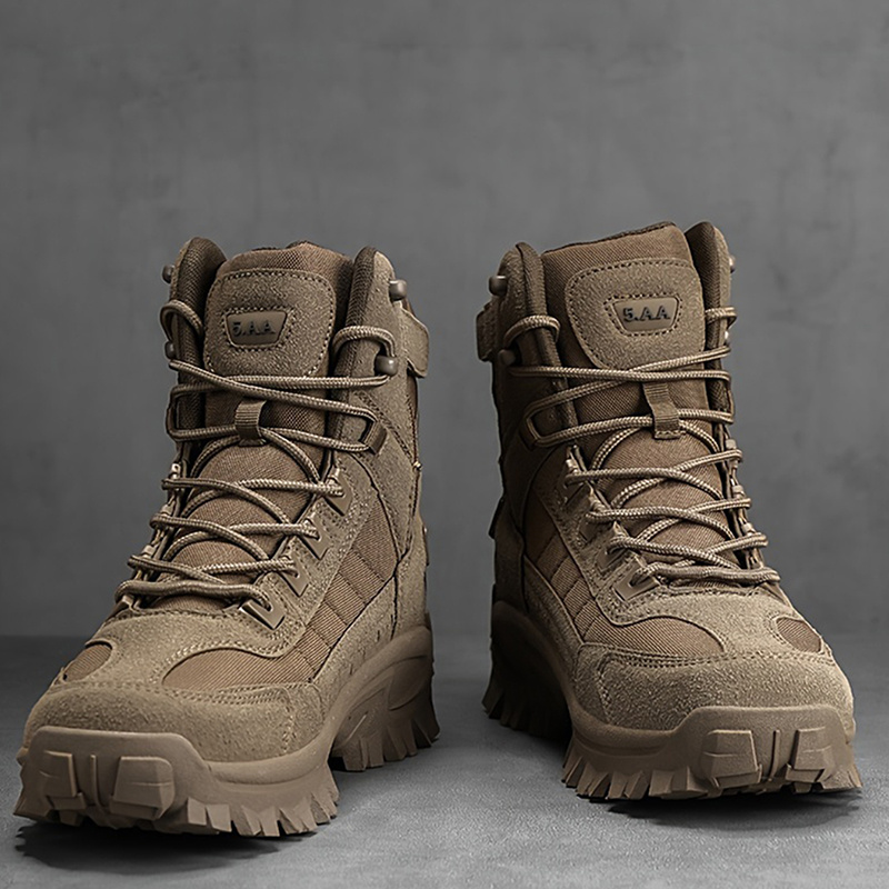 Engineered for agility and strength, these lightweight tactical boots feature a breathable PU/fabric upper, MOLLE webbing, and side pockets for added utility. The non-slip rubber outsole ensures steady traction across jungle trails, work zones, or hunting grounds. Built for all-season wear, they’re the perfect choice for hikers, hunters, and tactical outdoor missions.