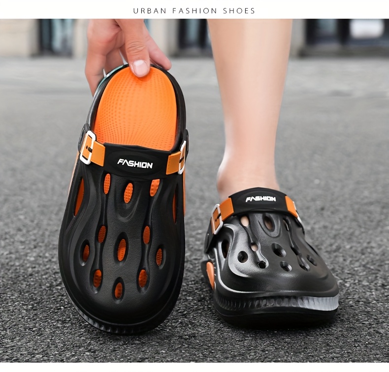 Stay cool and comfortable with these Unisex EVA Slip-On Beach Shoes. Featuring a bold black and orange color-block design, thick cushioned soles, and breathable ventilation holes, they’re perfect for beach trips, lounging, or everyday wear. Lightweight and washable with a detachable insole—ideal for all-season indoor and outdoor use.