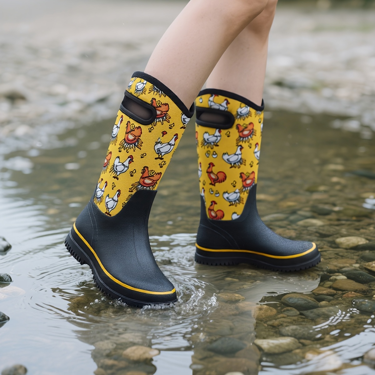Stay dry and comfortable with these High-Quality Mid-Calf Rain Boots for Women. Featuring an insulated neoprene upper and durable rubber sole, they provide waterproof protection, warmth, and slip-resistant grip. Perfect for gardening, farming, or fishing—these mud-ready boots are built for messy work and everyday wear.