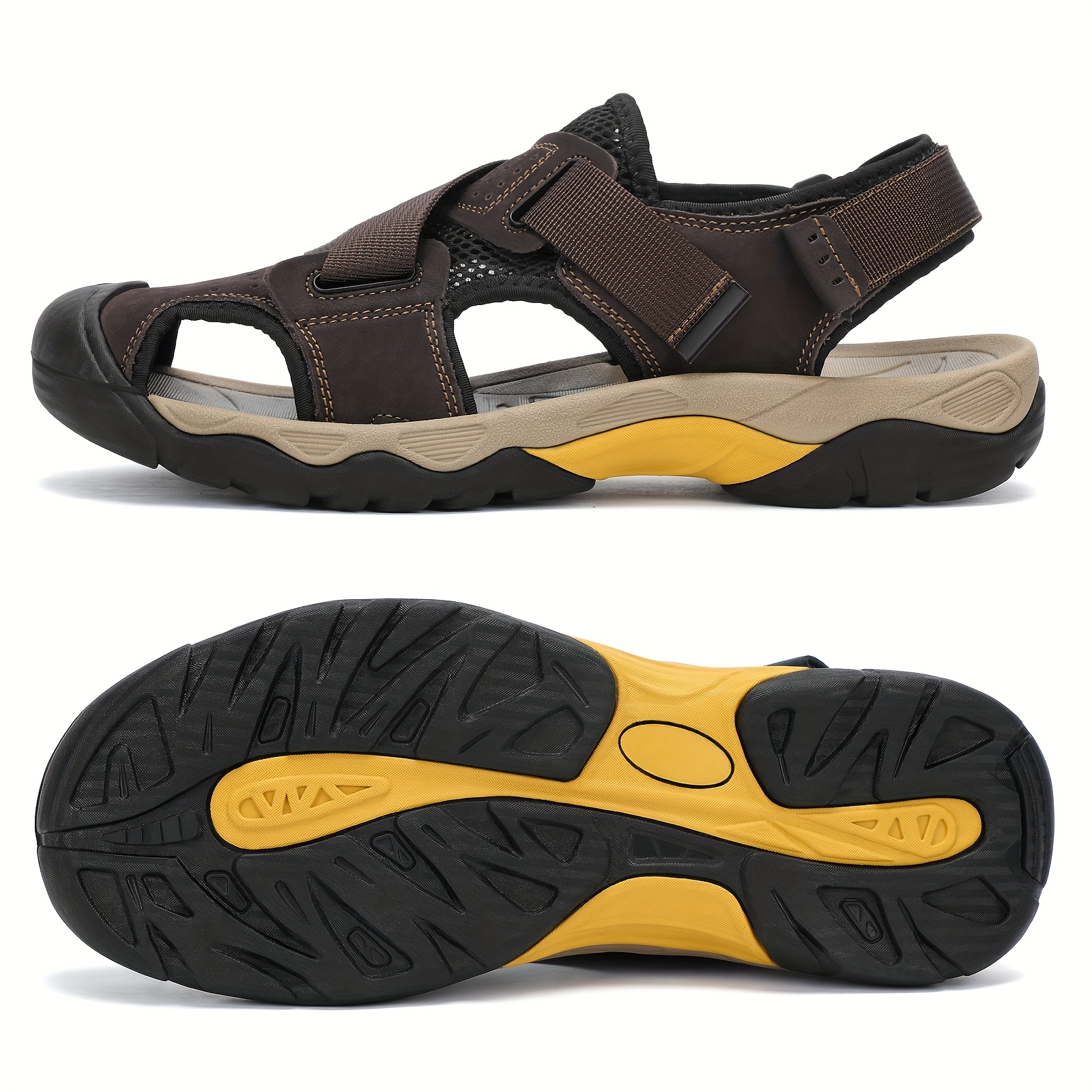 Enjoy secure comfort with these Men’s Non-Slip Outdoor Sandals. Featuring a closed-toe design, soft sole, and supportive arch, they’re ideal for beach outings, sports, or everyday adventures. The brown upper and rubber sole provide durable traction and all-day comfort—perfect for spring and summer wear.