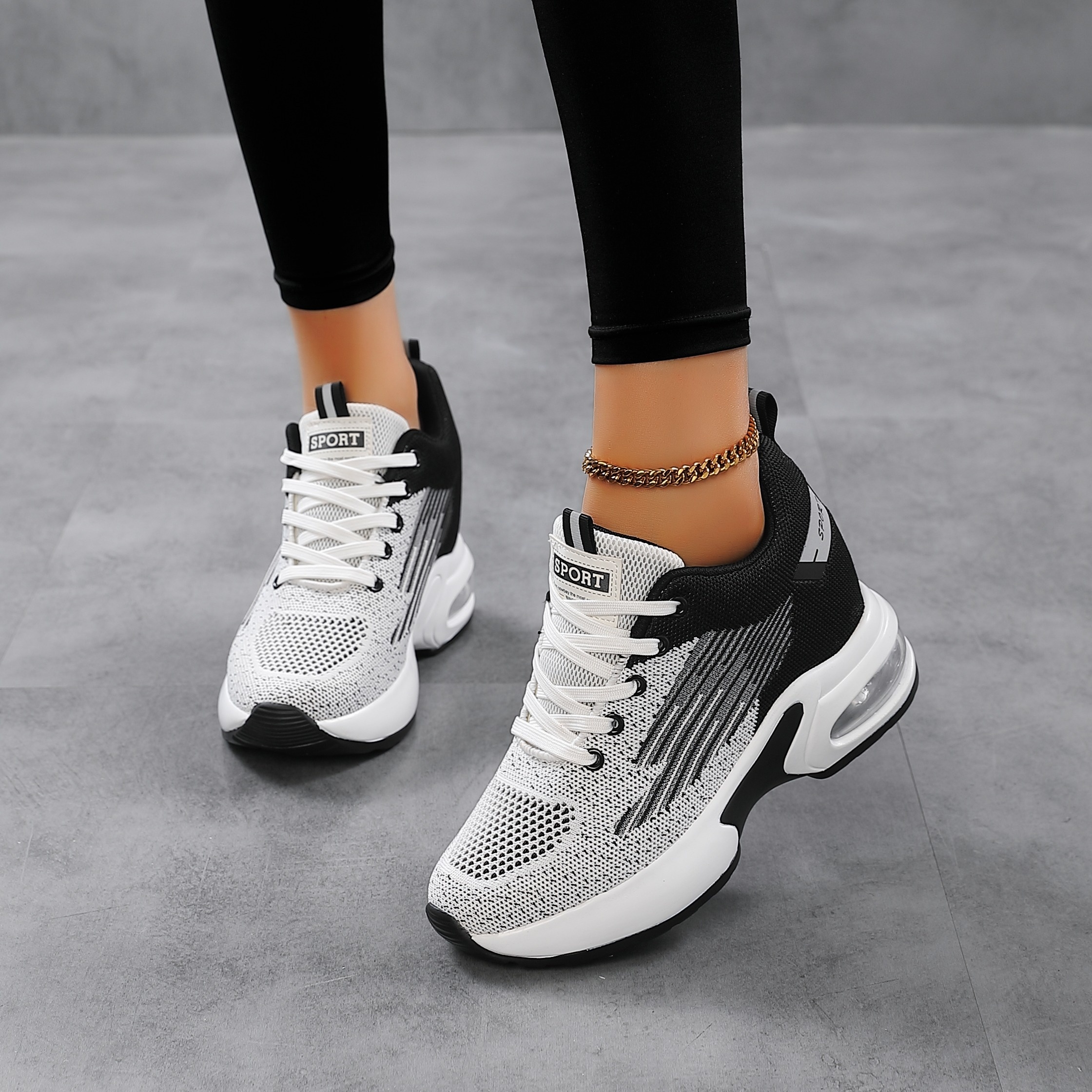 Breathable Wedge Heel Sneakers – Women’s Fashion Lace-Up Shoes with All-Season Fabric Upper and Lining, MD Sole – Casual Running Shoes
